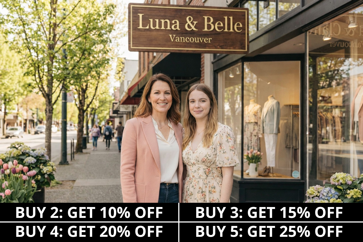 I opened my shop in Vancouver to create a place where women could feel confident and at ease. Belle grew up in the store, and at 16 she joined me as my partner. Together we built Luna & Belle Vancouver into what it is today.